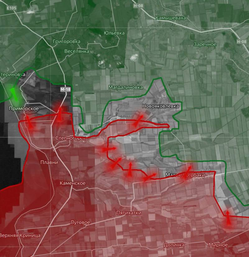 «На Запорожском направлении идут бои за Приморское и, по некоторым данным, за Речное. В Приморском значительная часть села представляет собой «слоёный пирог» из позиций сверхмалых групп.