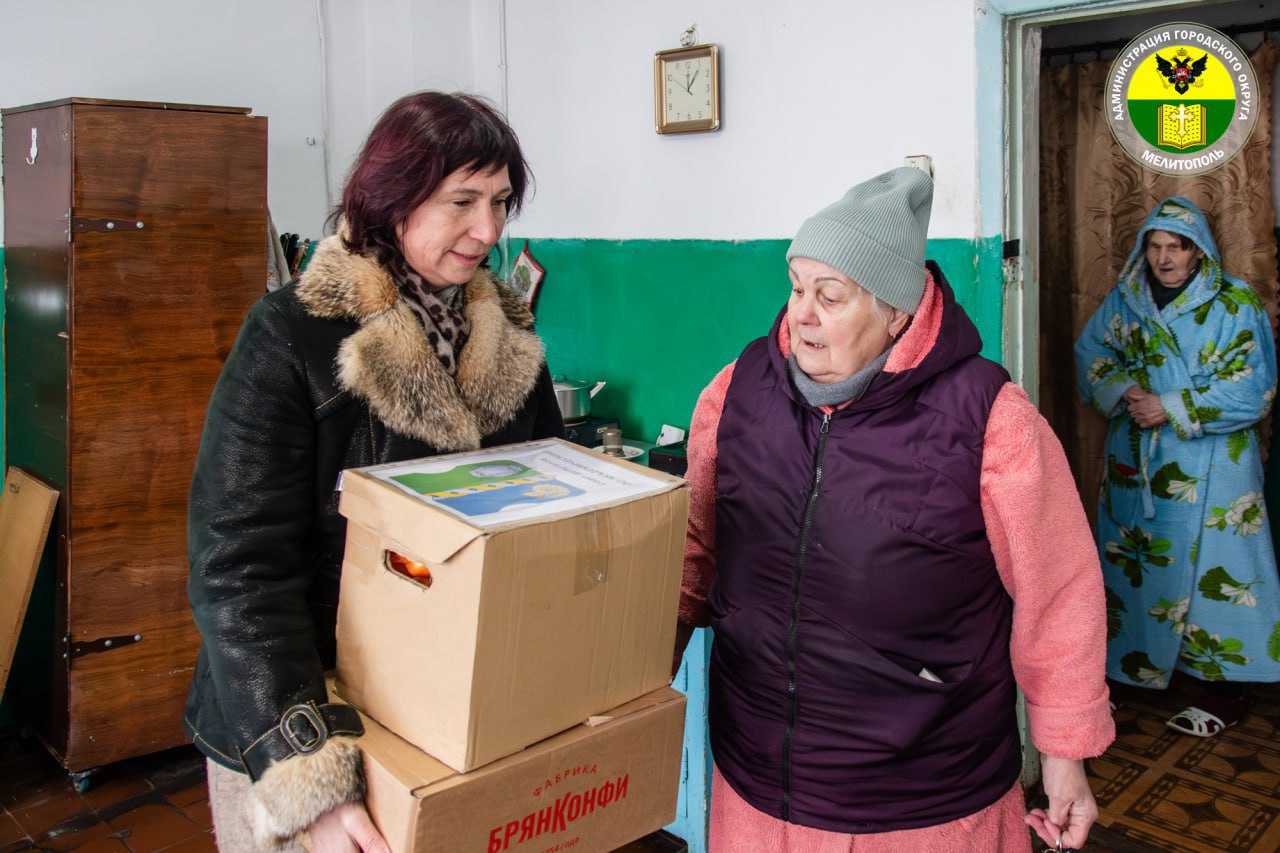 Исполняющая обязанности председателя Мелитопольского городского Совета Ирина Матвиенко передала гуманитарную помощь в общество слепых