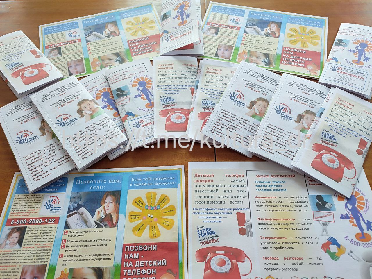 В завершении мероприятия всем присутствующим были выданы буклеты "Телефон доверия — шаг к безопасности!", содержащие номер единого общероссийского телефона доверия +78002000122 и короткий номер 124 для мобильных телефонов. Эти номера доступны бесплатно, круглосуточно и анонимно.