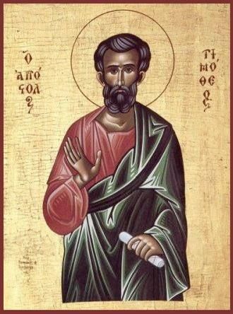 Святой апостол Тимофей родился в малоазийском городе Листре. Его мать Евника и бабка Лоида были тайными христианками, воспитавшими его в благочестии. Когда апостол Павел впервые посетил Листру и исцелил там хромого, семья Тимофея всем сердцем уверовала во Христа. Юноша стал ревностным учеником Павла, его неотлучным спутником и верным помощником в миссионерских трудах. Апостол Павел любил Тимофея как сына и в своих посланиях хвалил его верность, преданность и терпение в перенесении гонений.