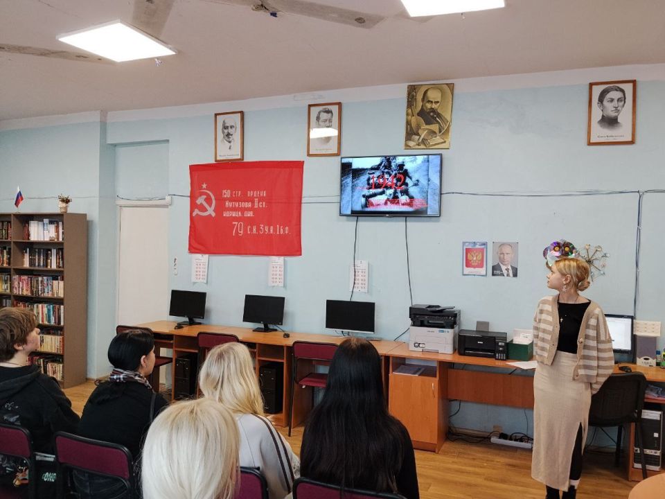 В библиотеке им. В. Маяковского прошел видеопоказ для студентов. Посмотрели хронику и кадры из фильмов о великом сражении.