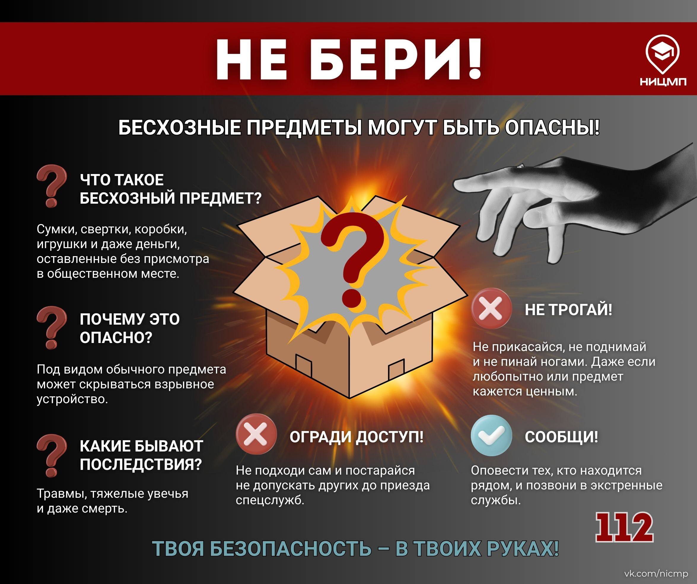 НЕ БЕРИ! Оставленные предметы могут представлять угрозу!