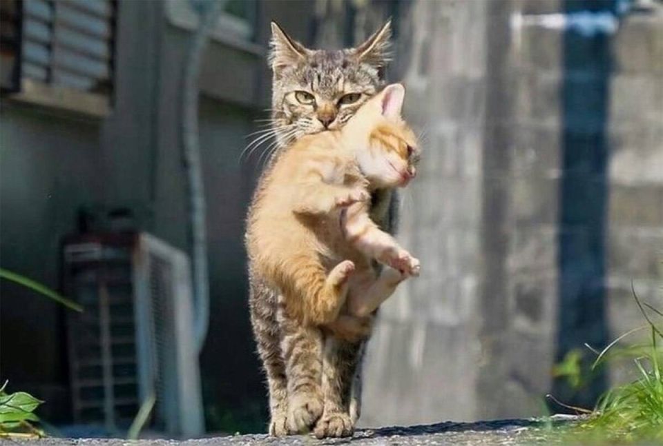 Котёнок был жив, а вот мать... Глубокая рана на боку, кровь на сером меху.