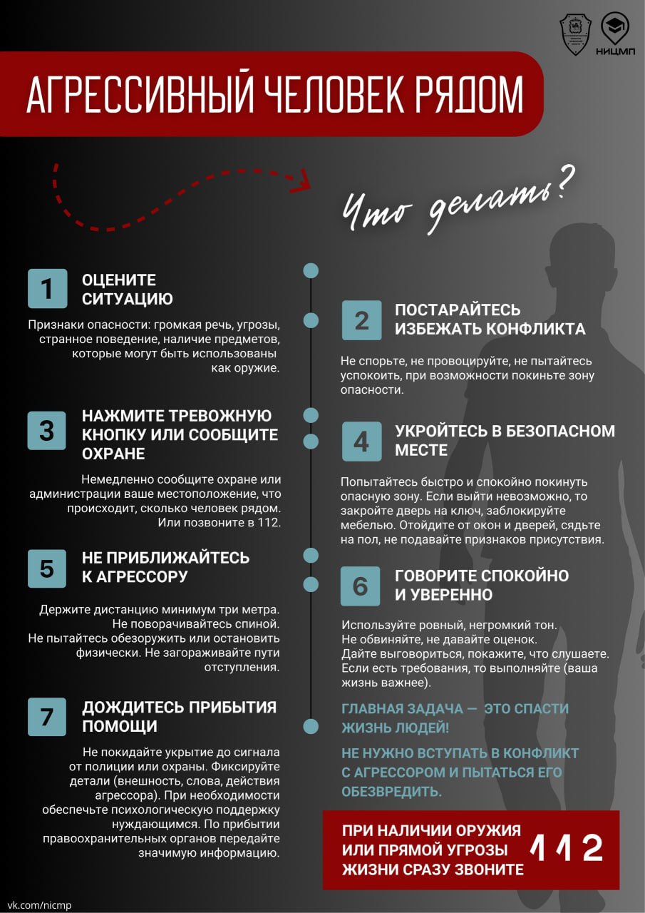 Подобные чрезвычайные происшествия требуют собранности и четкого следования правилам, чтобы снизить риски, а знание алгоритма действий при появлении агрессивного человека в здании поможет защитить себя и сохранить жизнь другим.