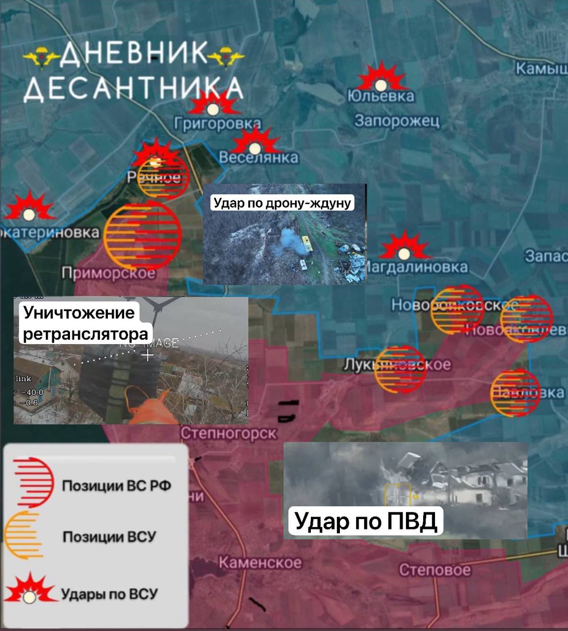 В северной части Приморского продолжаются позиционные бои, сообщает ТГ-канал "Дневник Десантника". В Малоатериновке наши операторы БПЛА ВДВ ВС РФ продолжают наносить огневое воздействие с применением ФПВ-дронов и дронов самолетного типа "Молния". Противник укрепил направление подразделениями Ронина, которые ведут себя как откровенные нацисты, наносят удары по передовым позициям, по прифронтовым тылам работают, жгут все подряд, включая мирных жителей, которые передвигаются на автомобильном транспорте в районе н.п. Васильевка, по трассе от Васильевки до Мелитополя, а также от Токмака до Мелитополя.