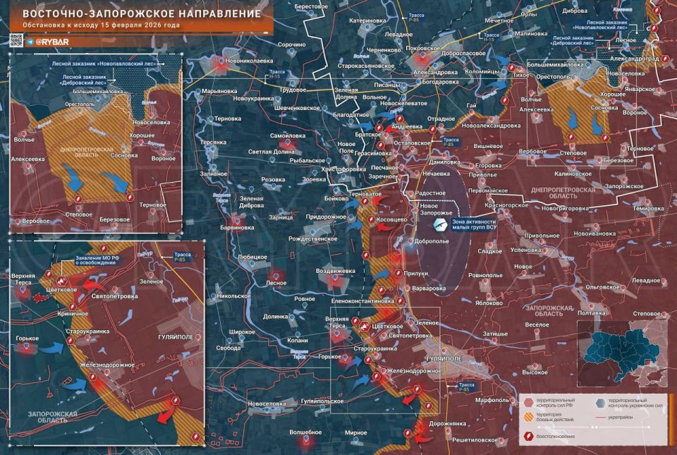 По данным «Рыбаря», пока на северном фланге ВСУ пытаются прорваться в тыл подразделениям ВС РФ, на южном дальневосточные подразделения ВС РФ продвигаются в сторону Верхней Терсы. Украинские формирования продолжают попытки расширить вклинение на рубеже Сосновка — Орестополь и накапливают силы для рывка к Степовому и Березовому.
