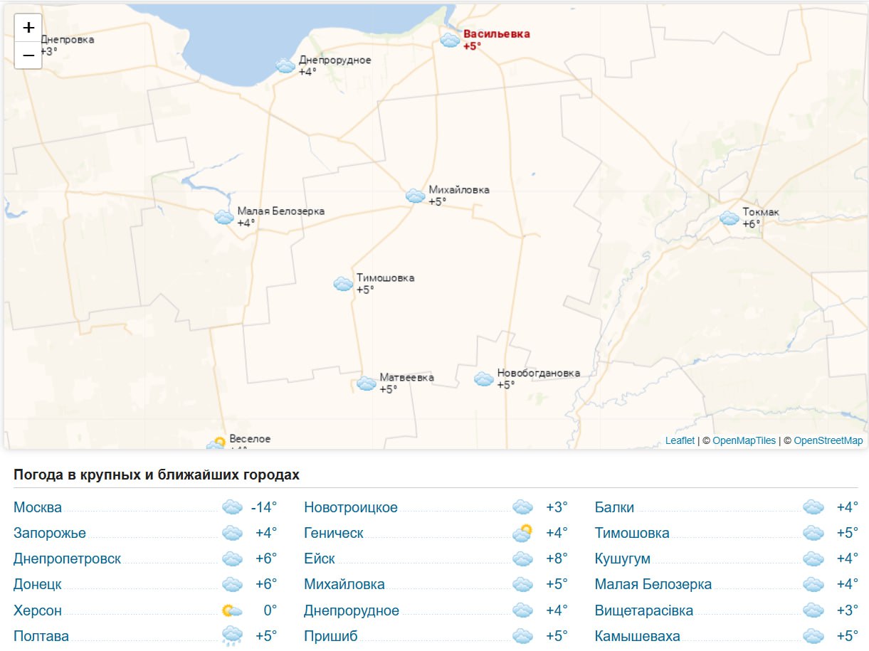 Погода 16 февраля 2026 года в крупных и ближайших к Васильевке городах и населённых пунктах