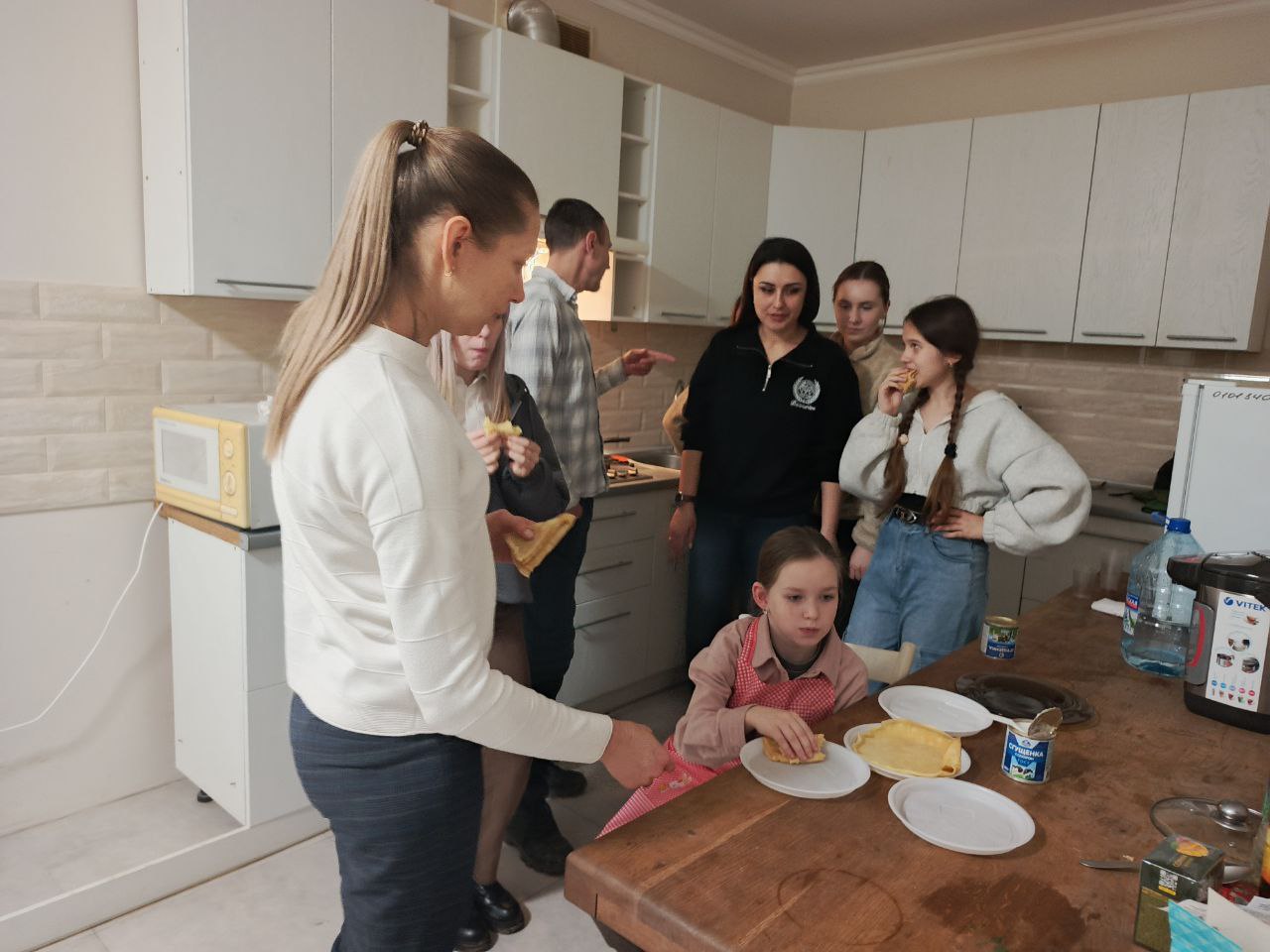 Все вместе делали тесто, из которого получались идеальные красавцы-блины! Каждый из участников смог проявить себя и испечь свой солнцеподобный "кругляшок".