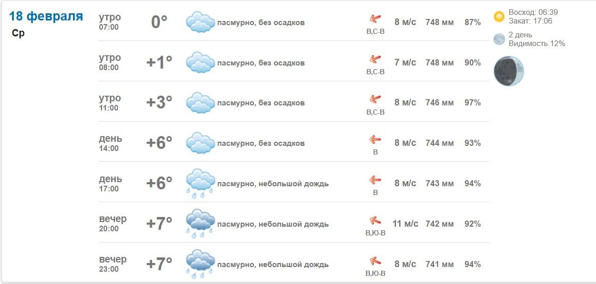 Погода 18 февраля 2026 года в крупных и ближайших к Васильевке городах и населённых пунктах.