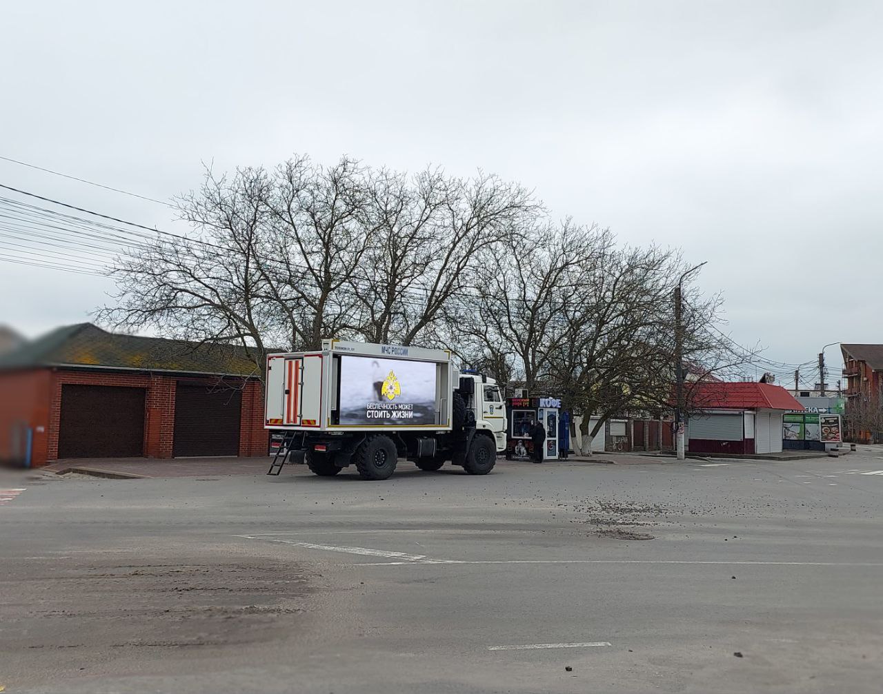 С помощью мобильного комплекса, установленного в центре Кирилловки, спасатели транслировали профилактические видеоролики.