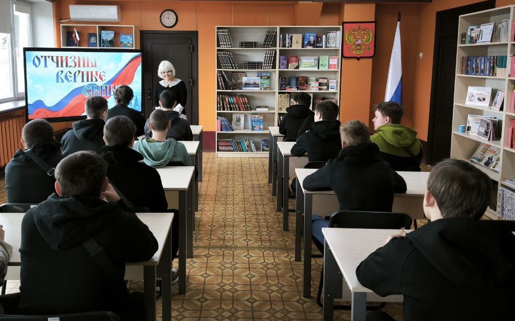 Ко Дню защитника Отечества в Токмакской центральной городской библиотеке для студентов многопрофильного лицея проведен Урок мужества «Отчизны верные сыны»