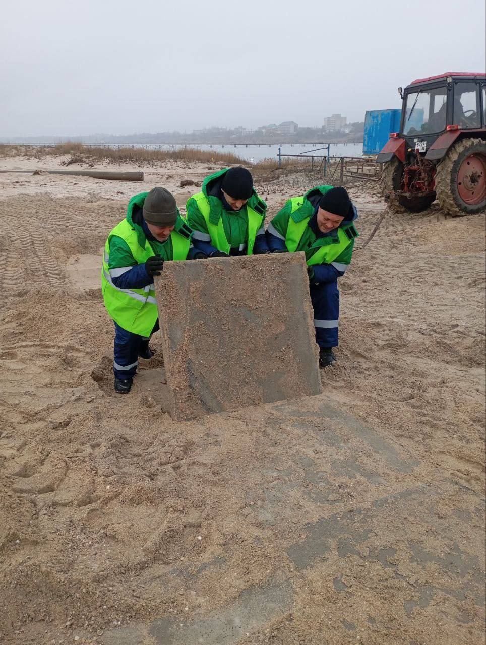 С помощью спецтехники и живой силы производили демонтаж бетонных плит, которые могли стать причиной травматизма у отдыхающих в летний сезон.