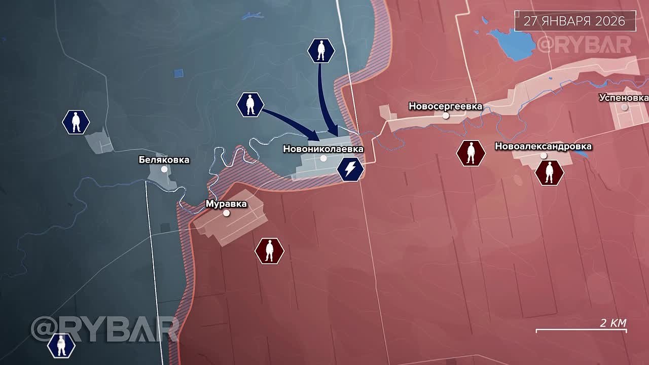 В середине января российские войска с переменным успехом вели бои на всей протяжённости Новопавловского направления. Украинские формирования предпринимали локальные контратаки, пытаясь вернуть ранее утраченные позиции у Волчьей.