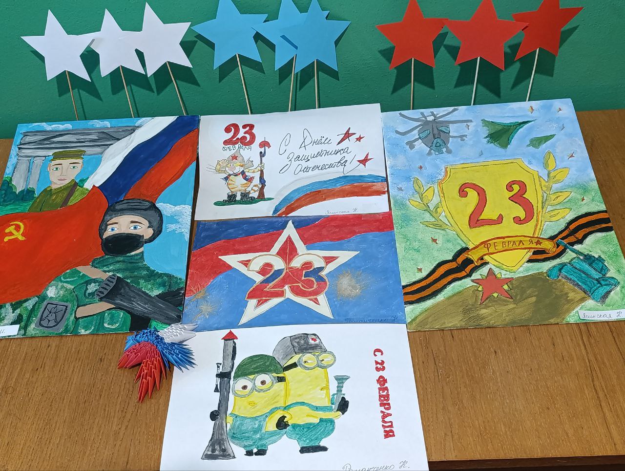 Ребята использовали разнообразные техники и материалы, что позволило раскрыть тему многогранно: наряду с серьёзными, глубоко символичными образами в ряде работ присутствуют лёгкие юмористические элементы. Такой подход придал выставке особую атмосферу — праздничную и душевную, а каждая картина стала маленькой историей, созданной детскими руками и отражающей искреннее восприятие подвига защитников Отечества.