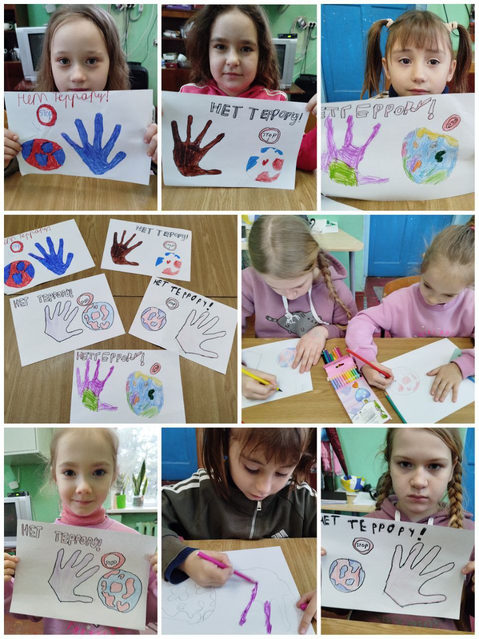 Самые юные участники "Чудесной мастерской" нарисовали мини постеры, выразив свою позицию против терроризма.
