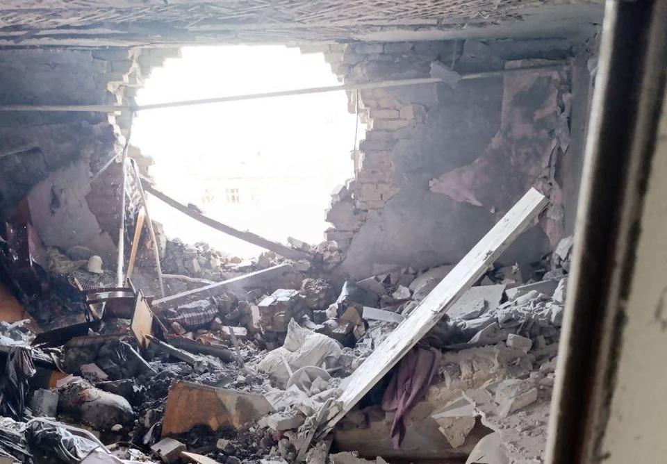 - Снаряд, пробивший стену, был такой мощности, что полностью выбита входная дверь, - написал Балицкий в своем сообщении.