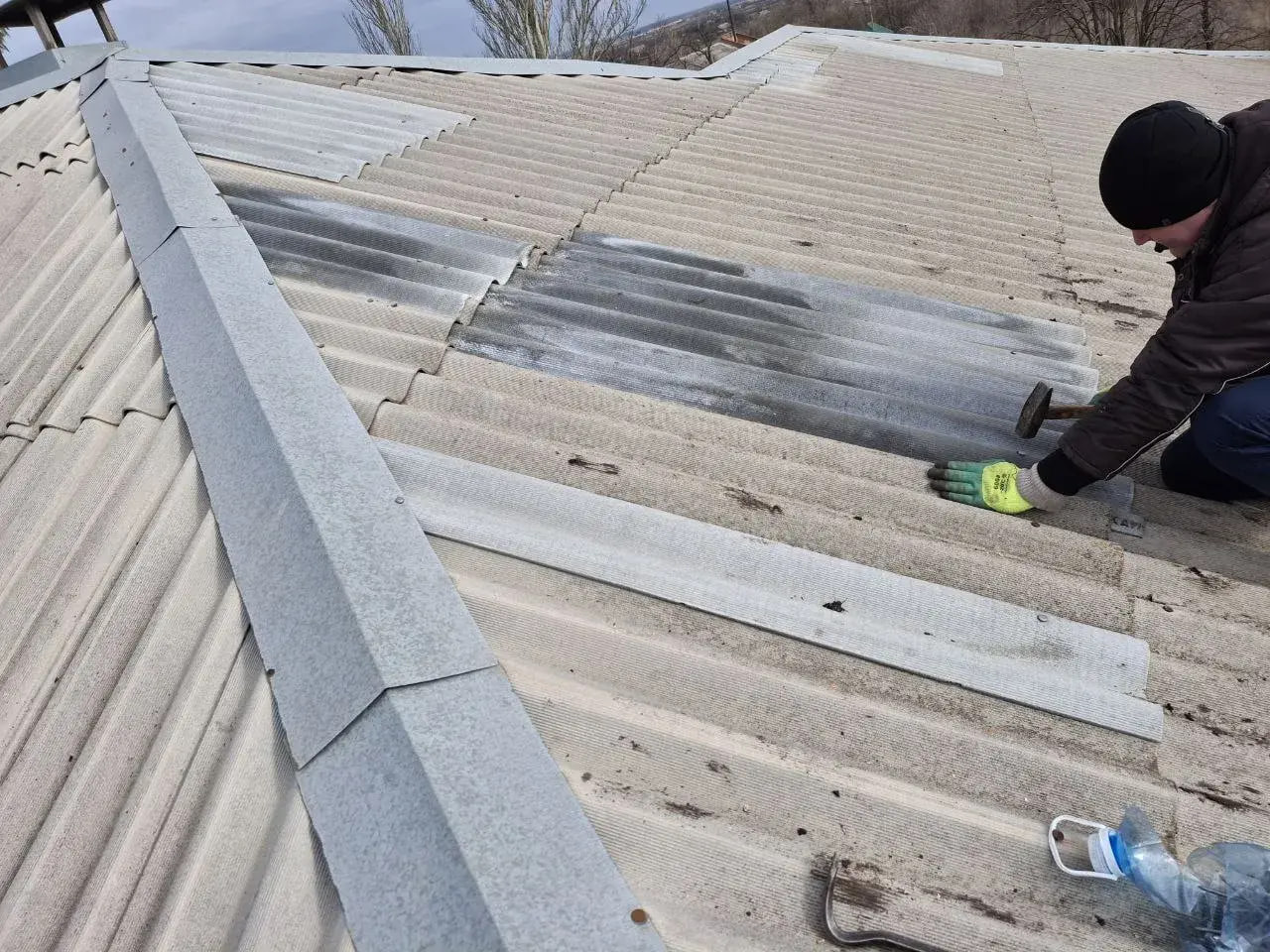 За несколько дней аварийно-восстановительная бригада Республики Марий Эл закрыла тепловой контур плитами ОСБ, установив их на месте выбитых осколками 4 окон, а также полностью заменила 4 листа шифера на крыше, не считая мелкого ремонта и работ по укреплению кровли.