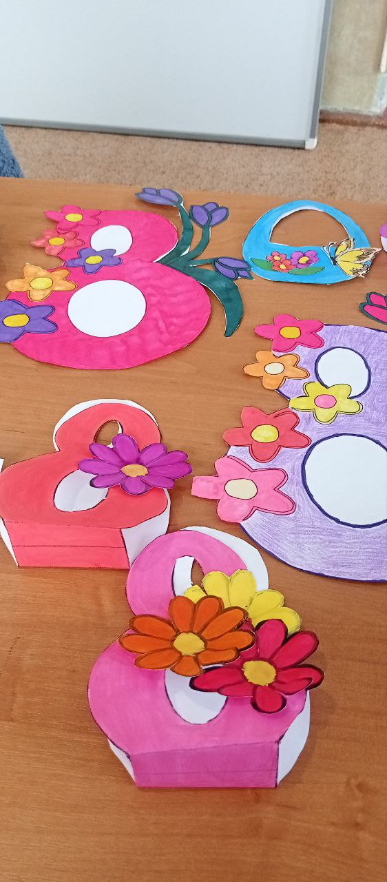 Участники мастеркласса освоили техники создания поздравительных открыток и изготовили оригинальные поделки. Каждый участник разработал собственный дизайн изделия и вложил в работу личные эмоции и тёплые пожелания для любимых женщин. В результате все ушли с уникальными творческими работами. Мероприятие подарило участникам массу положительных эмоций и помогло создать душевные подарки к празднику.