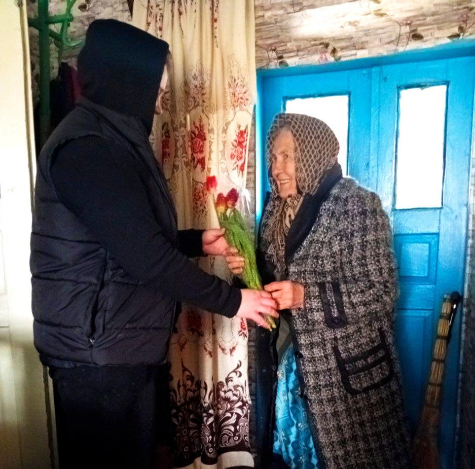 В селе Волковка Нововладимировка местные активисты движения «Юг молодой» поздравили с Международным женским днём 8 Марта бабушек — детей войны