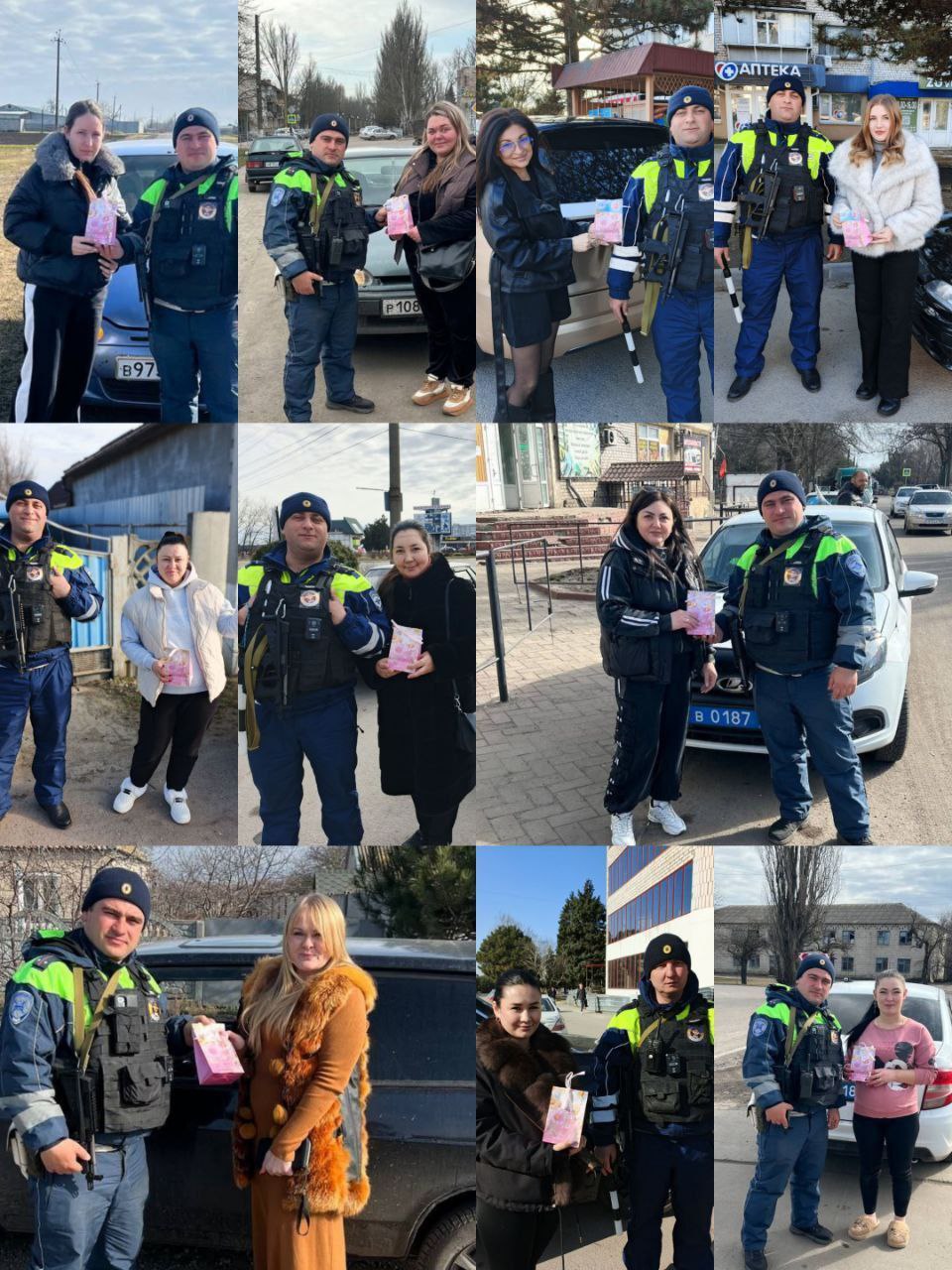 Автоледи получили подарки от сотрудников ДПС в честь 8 Марта