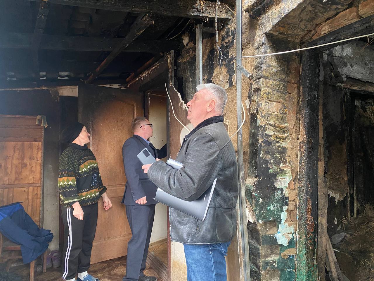 Заведующий сектором социальной защиты населения Бердянского МО Василий Глеба совместно с представителем региона-шефа Чувашской Республики Александром Филипповым посетили село Осипенко. В рамках поездки они осмотрели частное домовладение, пострадавшее от бытового возгорания: в результате происшествия обгорела часть дома и провалилась крыша.