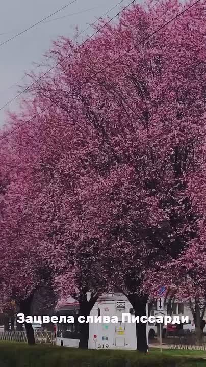 В городе зацвела слива Нигра - дерево, которое внешне очень напоминает японскую сакуру. Из-за яркого цветения улицы Краснодара сейчас действительно напоминают атмосферу японских городов - Токио, Осаку и другие известные локации Японии.
