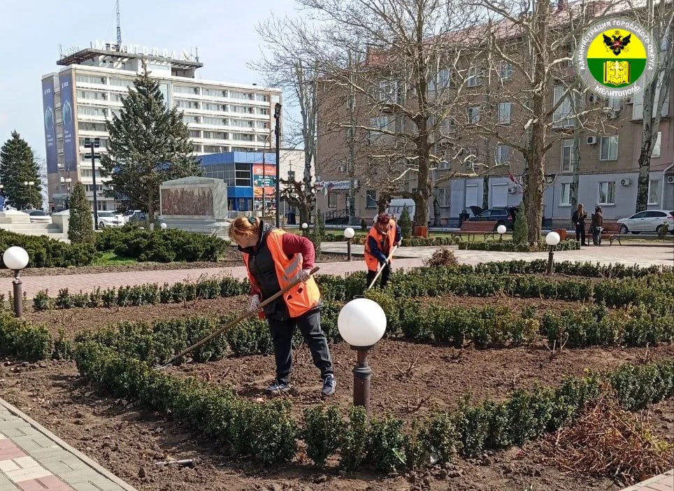Сотрудники МКУ «Благоустройство» выполнили формирование шелковицы, раскрытие роз, весеннюю обрезку, а также выгребку и планировку территории.