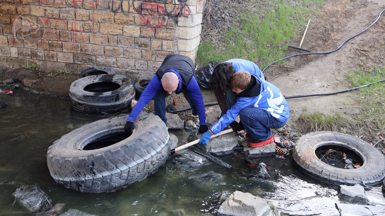 Активисты Запорожского регионального отделения партии Единая Россия совместно с Региональным отделением «Молодой Гвардии Единой России» провели уборку ручья Песчаного, который впадает в реку Молочную в Мелитополе.