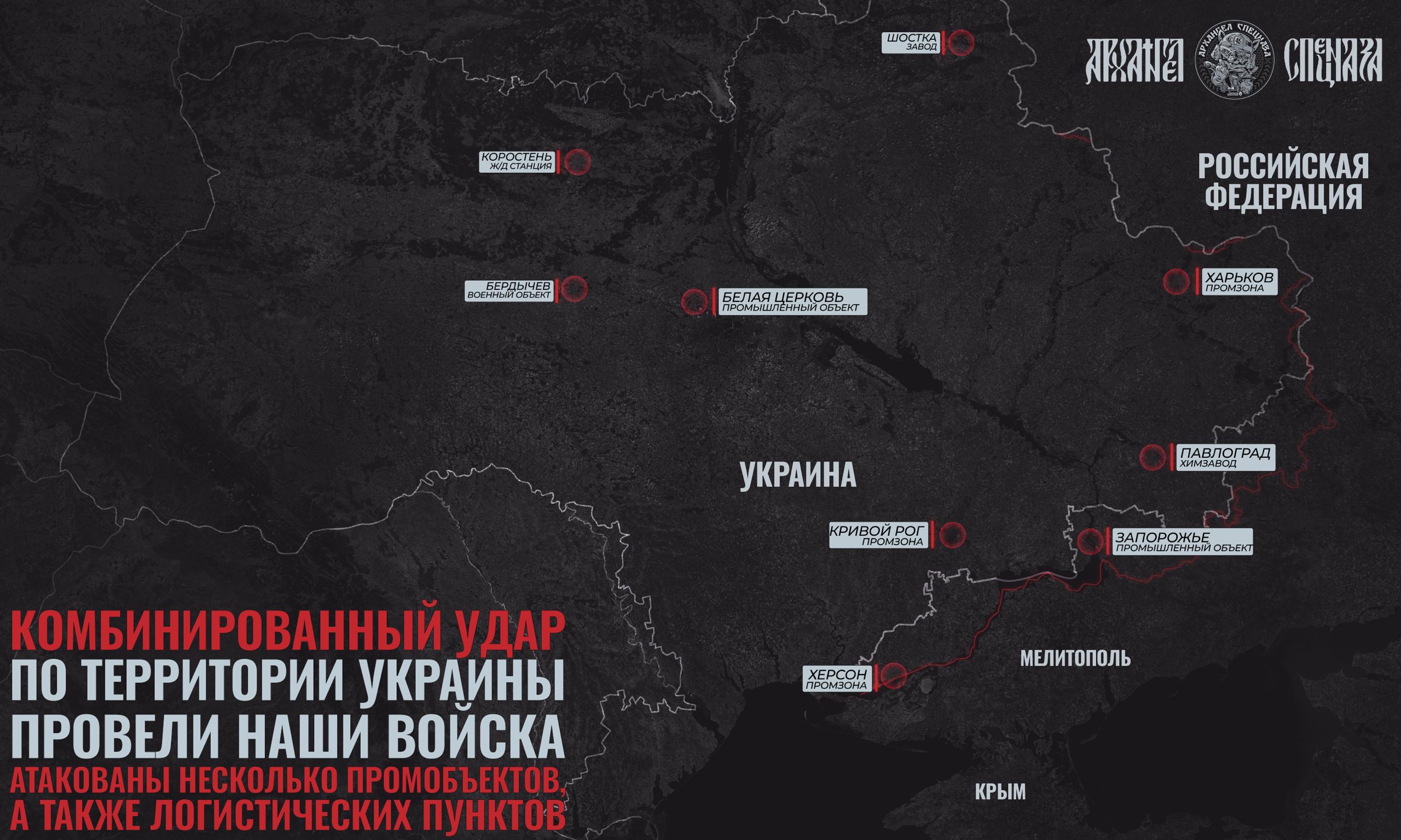 В Житомирской области сразу два города попали под удар. В Коростени атакована ж/д станция, где произошел взрыв. А также атакован Бердичев, где есть тренировочный центр ССО. Возможно, и он стал целью атаки.