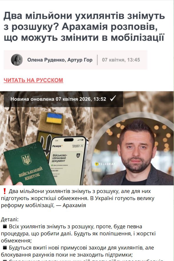 Но случилось чудо и их решили всё-же снять с розыска, но не потому, что нахождения в розыске 10% населения страны это ебаный бред и абсурд, а исключительно в качестве жеста доброй воли. Теперь вместо бесполезногоо розыска, к двум миллионам съебавшихся в ЕС хохлов будут "применены жёсткие ограничения", а именно - в пользу государства будет отжато всё имущество оставшееся у них в свинарнике. Весь этот треш представили с помпой хохлам под названием "Великой реформы могилизации" и даже сам Арахмия(!) дал своё слово, что после её принятия, жители евроГУЛАГА станут встречать бусики ТЦК в своих дворах с цветами и все наконец-то запануют, как им и обещали в 2014г.