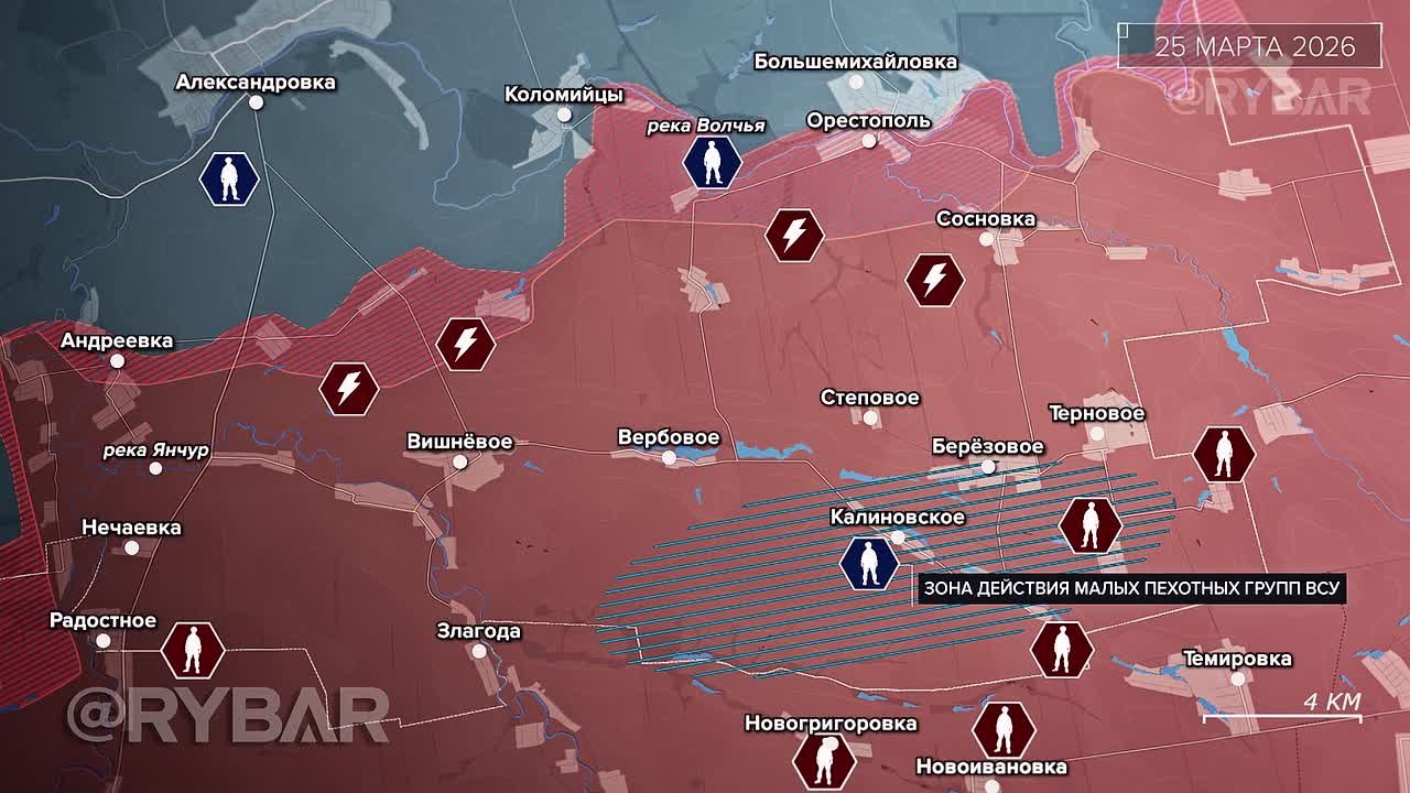 Российские войска после остановки наступления противника на Восточно-Запорожском направлении к концу марта начали возвращать ранее утраченные позиции. Штурмовики перешли в атаки на северном и центральном участках направления, стремясь отбросить ВСУ из тактически значимых населенных пунктов.