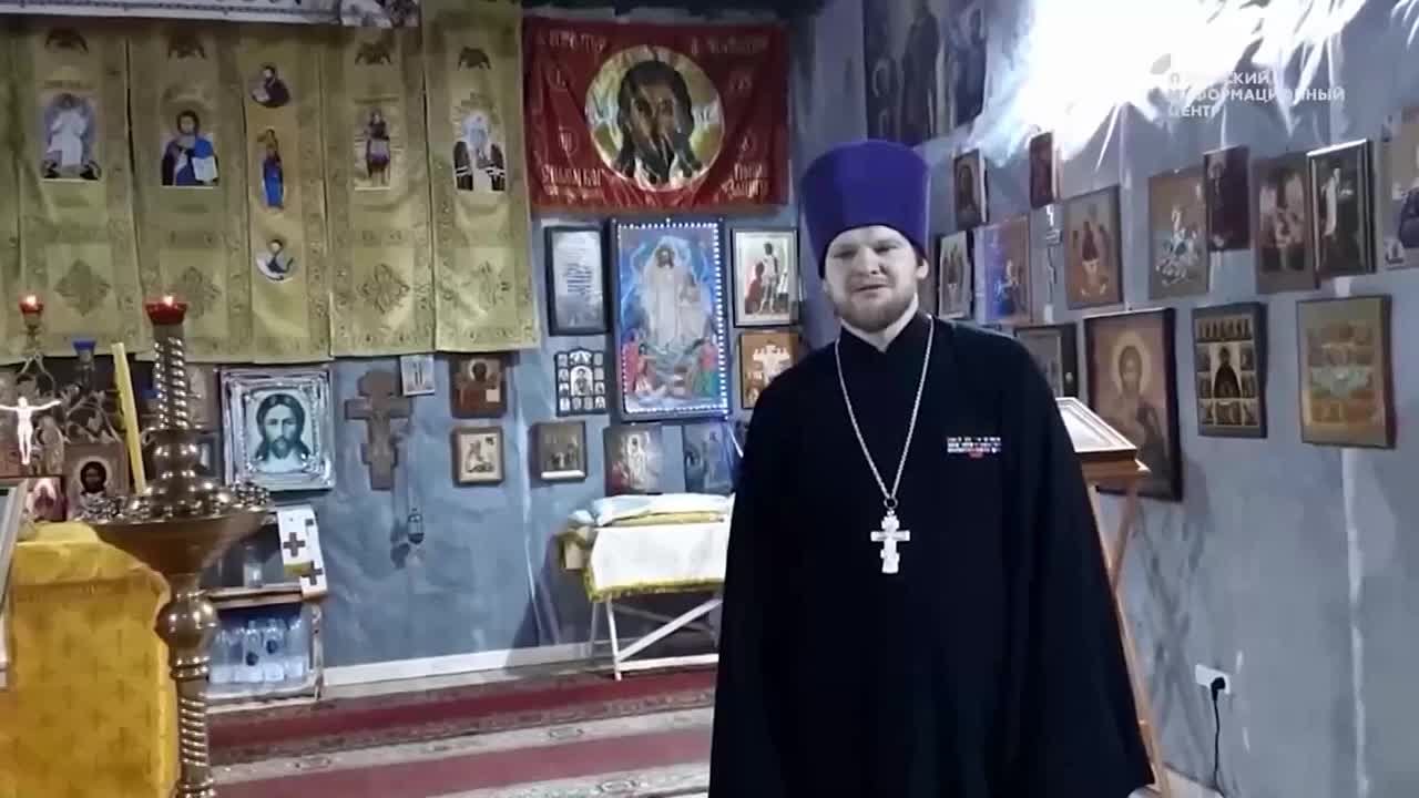 Эксклюзивные кадры корреспондента из походного храма казачьей разведывательной бригады "Терек" Добровольческого корпуса.