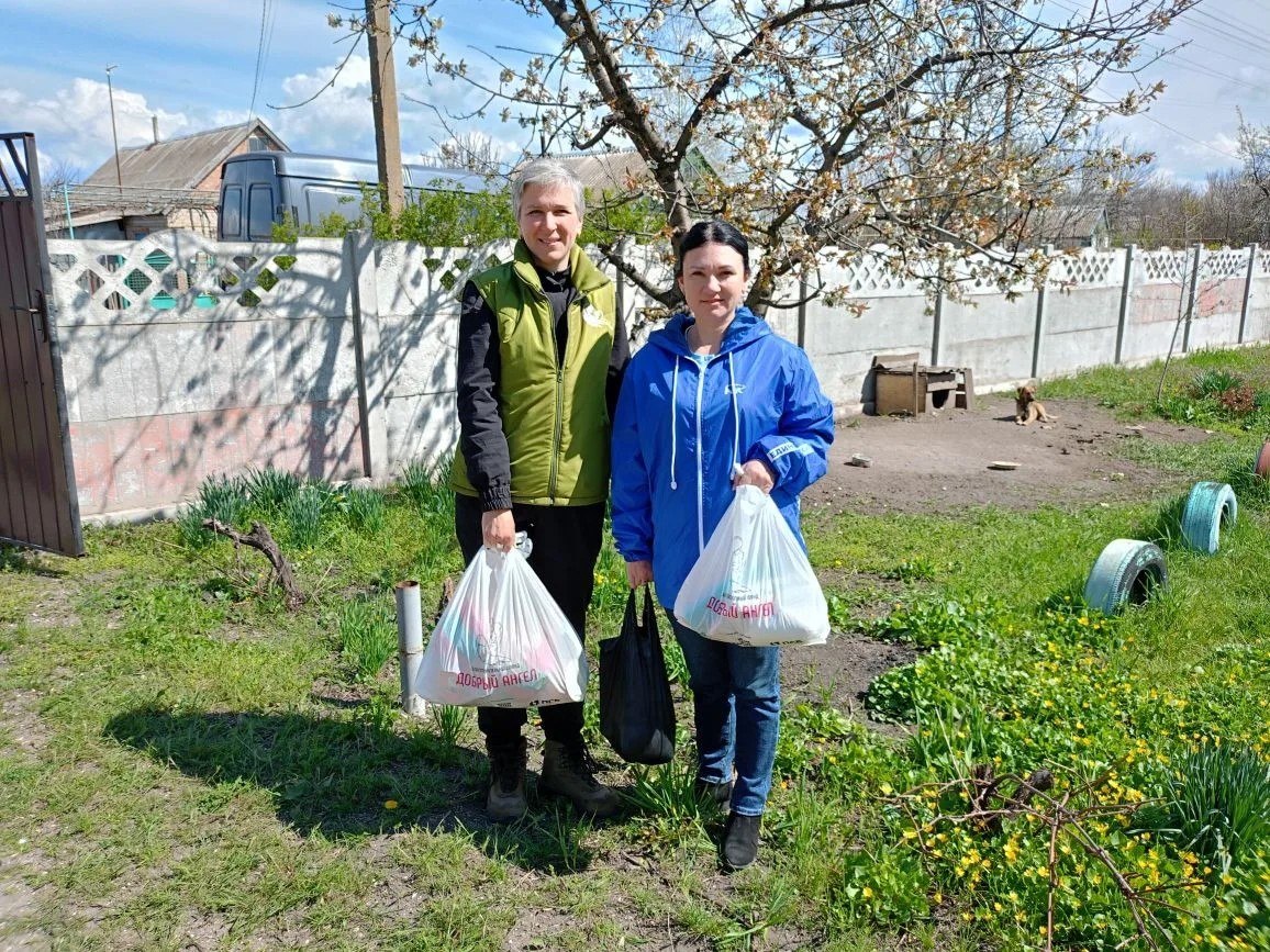 Председатель окружного Совета депутатов Наталья Саломасова совместно с благотворительным фондом «Добрый ангел» передали женщине продуктовые наборы и средства гигиены.