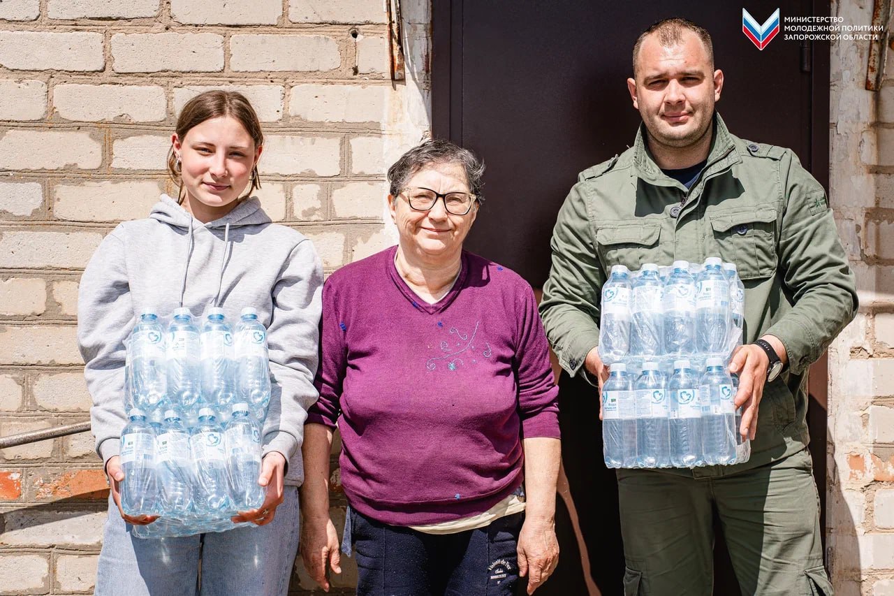 Особая благодарность Российскому Союзу Молодёжи, Ассоциации волонтёрских центров «Добро.рф» и компании-производителю ООО «ФКПЧФ БОБИМЭКС ТМ» за предоставленную воду и помощь Запорожской области!
