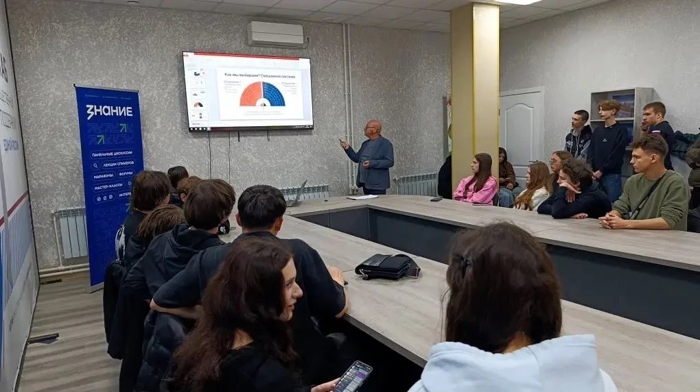 Член Избирательной комиссии Запорожской области, лектор Российского общества «Знание» Константин Горбачев объяснил студентам, как устроена избирательная система в России и в регионе, какие бывают выборы (местные, региональные, федеральные), и о выборах депутатов Госдумы в 2026 году.