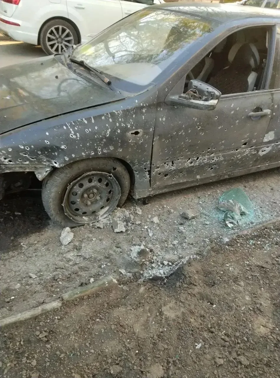 Поврежден фасад дома, прилегающая территория, припаркованные автомобили. Об этом сообщили региональные власти.