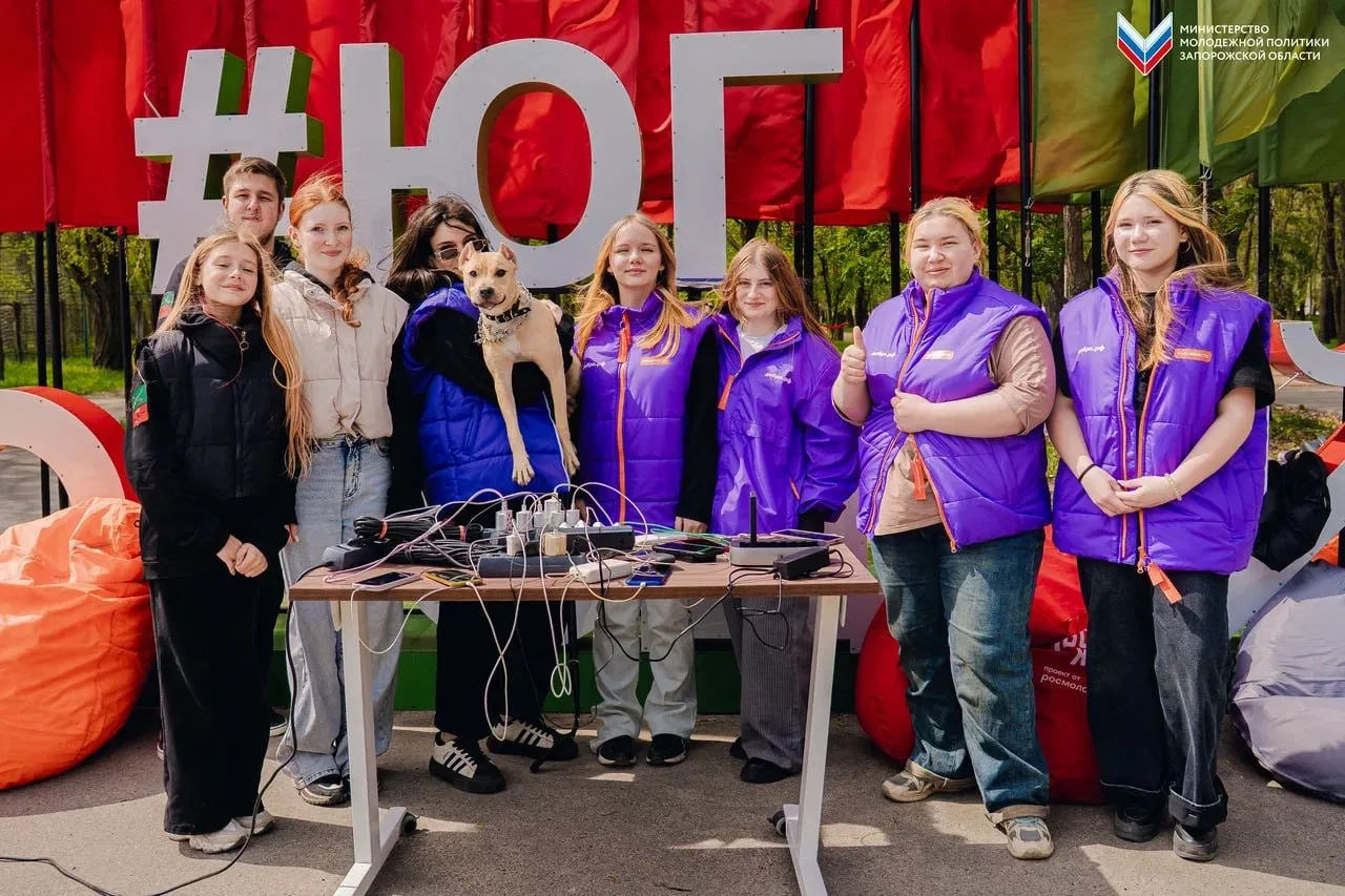Из-за отсутствия электроэнергии в Мелитополе Министерство молодёжной политики Запорожской области совместно с «Единой Россией» развернули пункт подзарядки мобильных устройств в парке им. Горького.