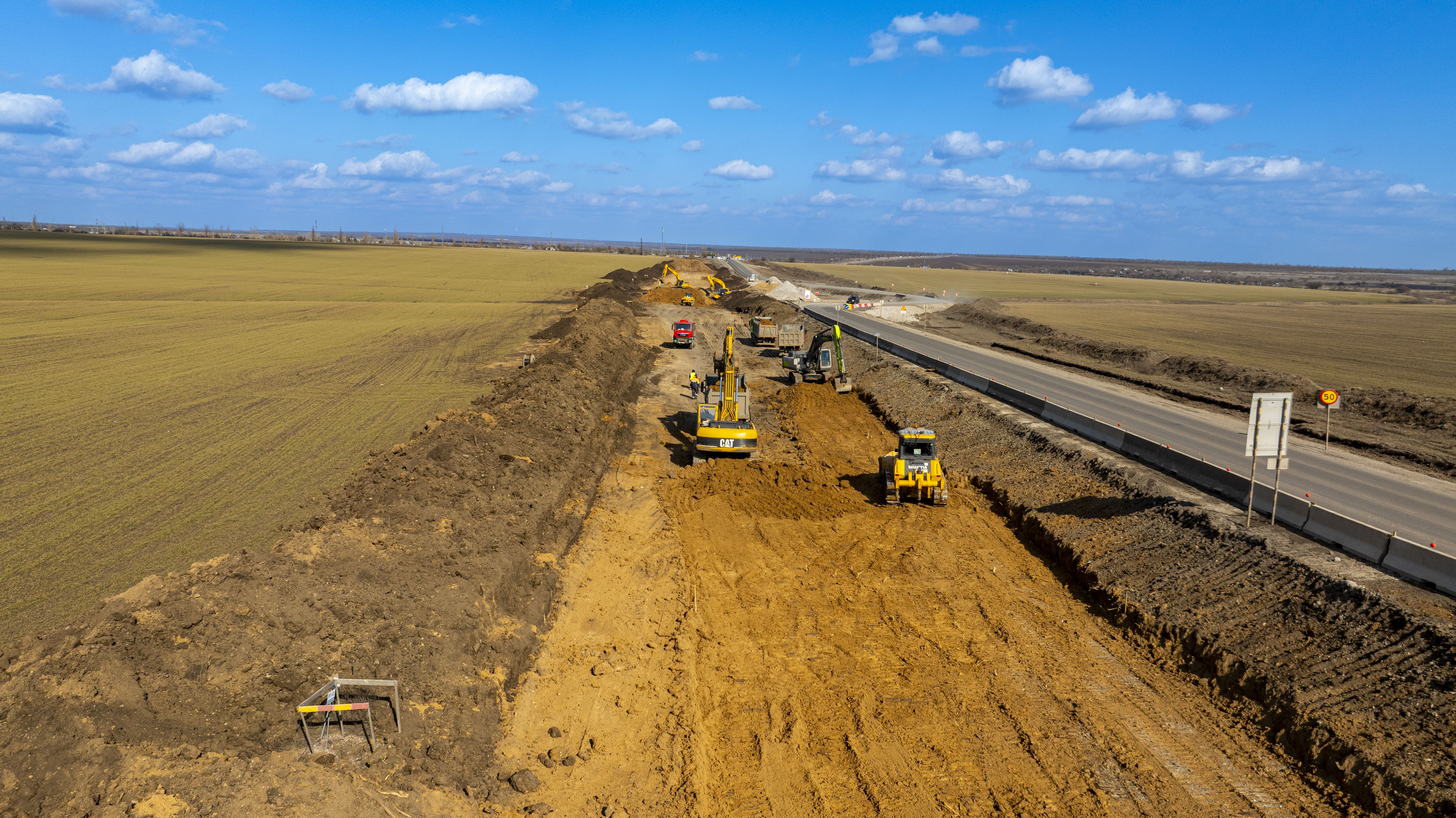 Подготовительный этап уже завершен: специалисты дорожного хозяйства занимаются устройством основного хода участка автодороги «Новороссия». Вместе с тем, продолжаются работы по снятию почвенно-растительного слоя и устройству земляного полотна, а также рабочего слоя с применением техногенного грунта. Одновременно производятся монтаж водопропускных труб и переустройство инженерных коммуникаций, попавших в зону производства работ.