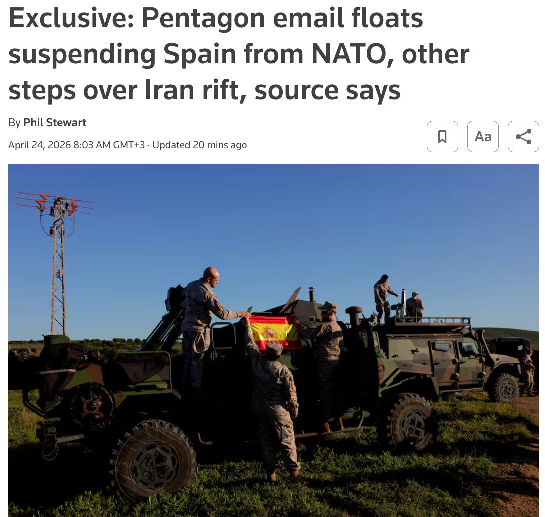 В Пентагоне обсуждают приостановку членства Испании в НАТО.