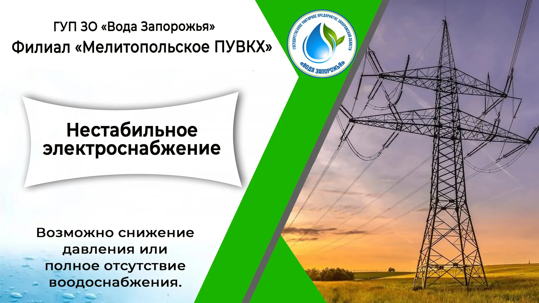 Филиал «Мелитопольское ПУВКХ» ГУП ЗО «Вода Запорожья» информирует!