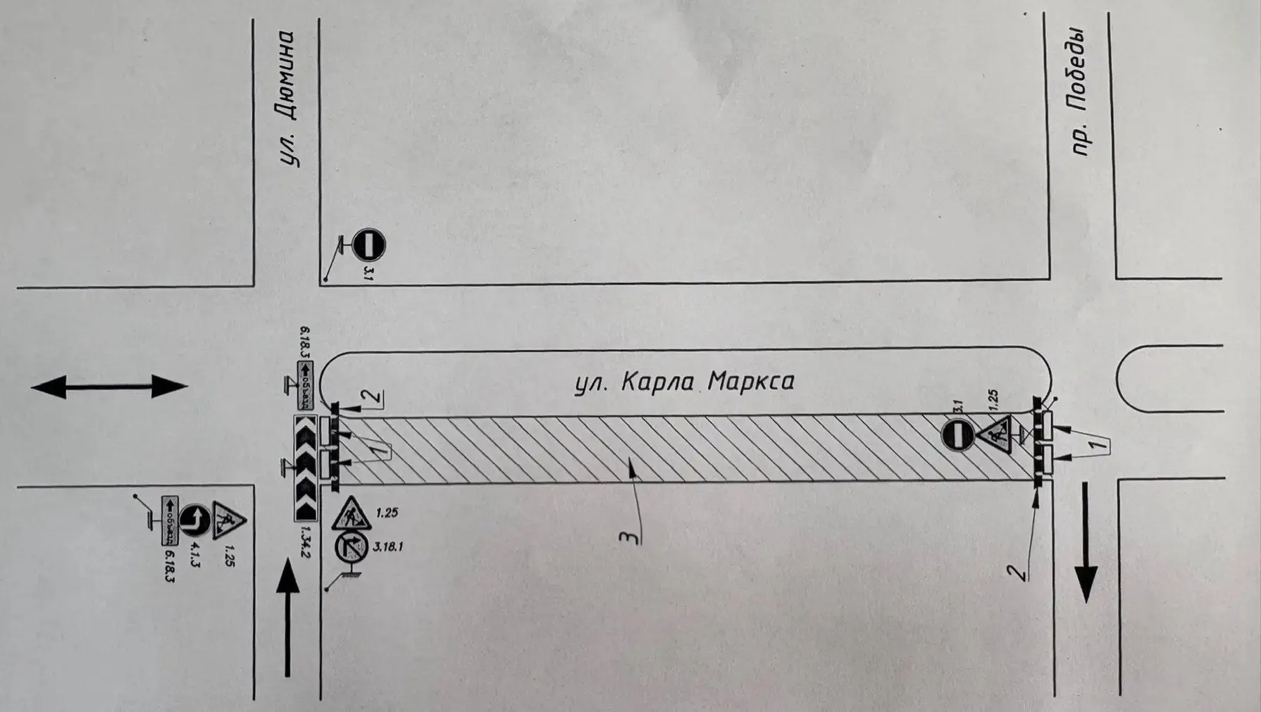 на участке улицы Карла Маркса (ул. Тверская) — от улицы Дюмина до проспекта Победы в направлении проспекта Победы. Ограничение продлится до 30 мая 2026 года.
