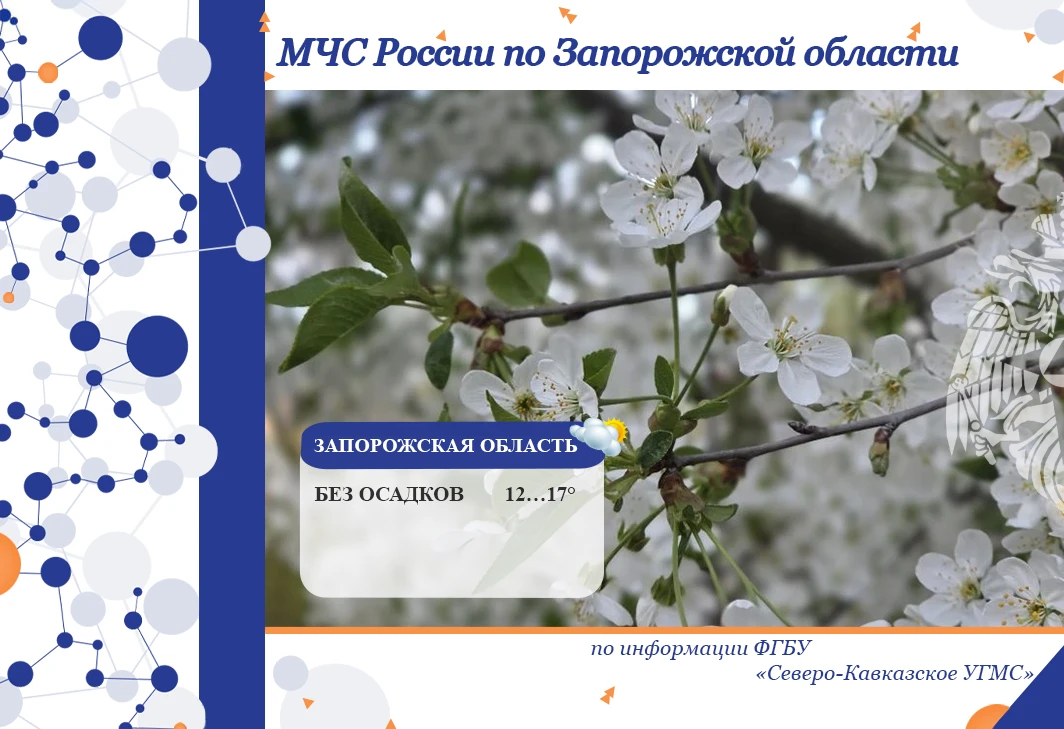 Облачно с прояснениями. Без существенных осадков. Ветер западной четверти 7-12 м/с, местами порывы до 15 м/с. Температура воздуха ночью и утром 2…7°, при прояснениях до , в отдельных районах заморозки в воздухе и на поверхности почвы -1…-3°; днем 12...17°.