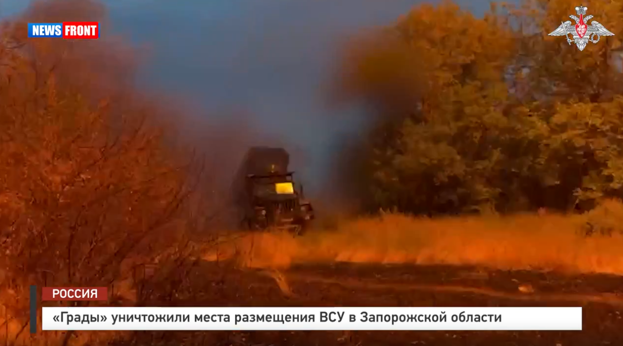 Расчеты 122-мм реактивных систем залпового огня БМ-21 «Град» группировки войск «Восток» уничтожили места размещения украинских формирований в районе населенного пункта Новоселовка Запорожской области. Кадры боевой работы публикует Минобороны РФ.