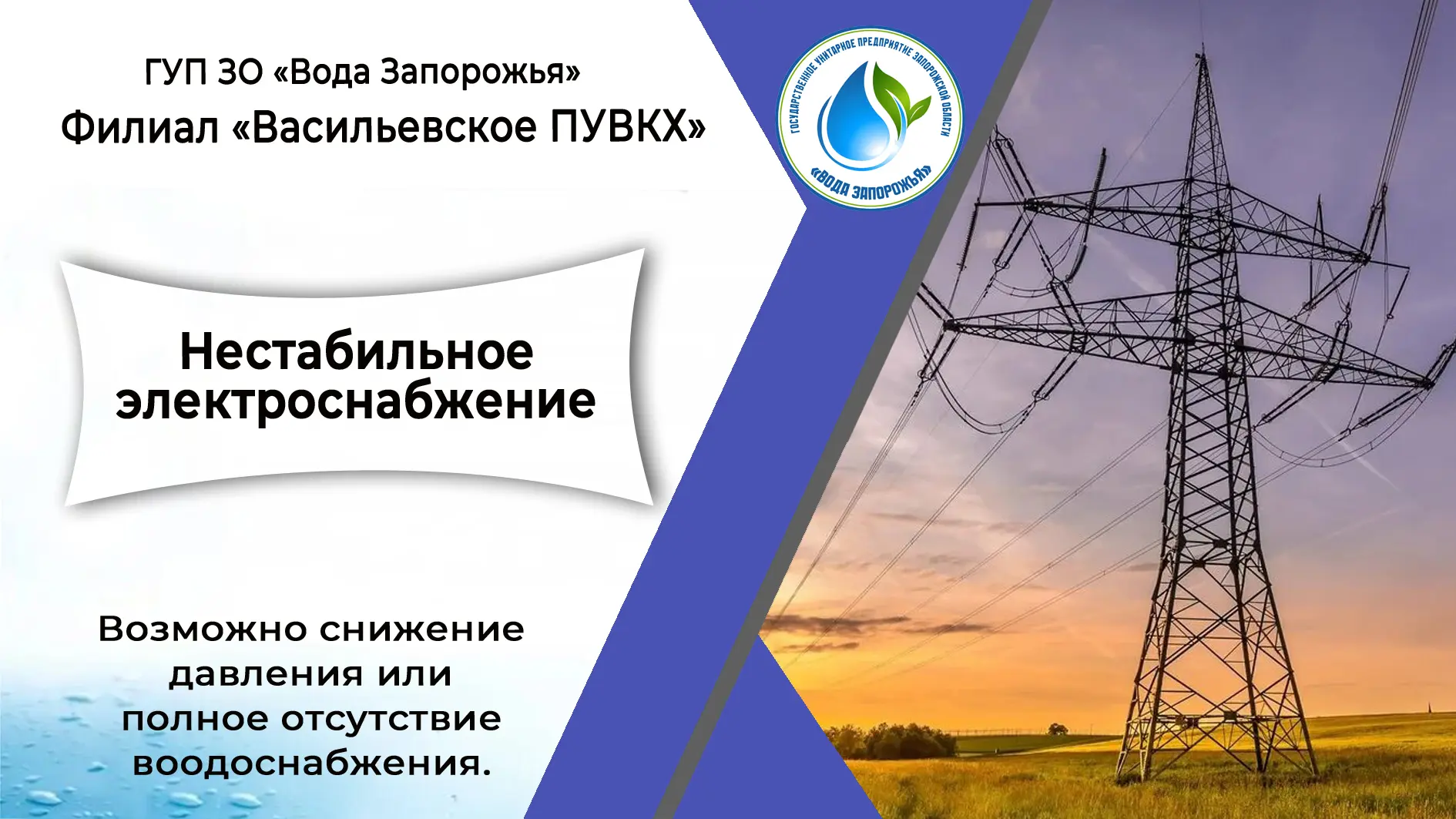 Филиал «Васильевское ПУВКХ» ГУП ЗО «Вода Запорожья» информирует!