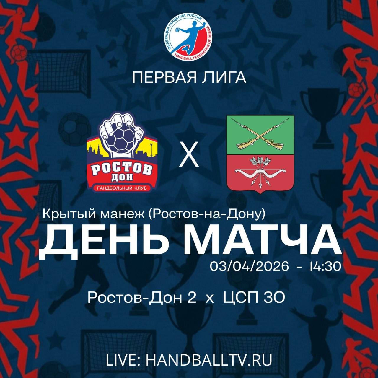 Сегодня, 3 апреля, в 14:30 в рамках Чемпионата России по гандболу - Первая лига 2025/26 наша команда ©«ЦСП ЗО» встретится с командой «Ростов-Дон 2».