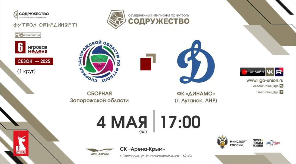 Сегодня сборная Запорожской области по футболу выиграла матч с ФК «Динамо» Луганск4 мая в 17:00 сборная Запорожской области по футболу сыграла с ФК «Динамо» Луганск в спортивном комплексе «Арена-Крым» в г.Евпатория (Республика Крым) и наша сборная...