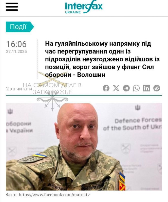 Представитель командования южной группировки ВСУ Владислав Волошин сообщил, что российские войска приблизились к Гуляйполю, используя фланговый обход, вызванный несогласованным отступлением одного из украинских подразделений. "Для сохранения личного...
